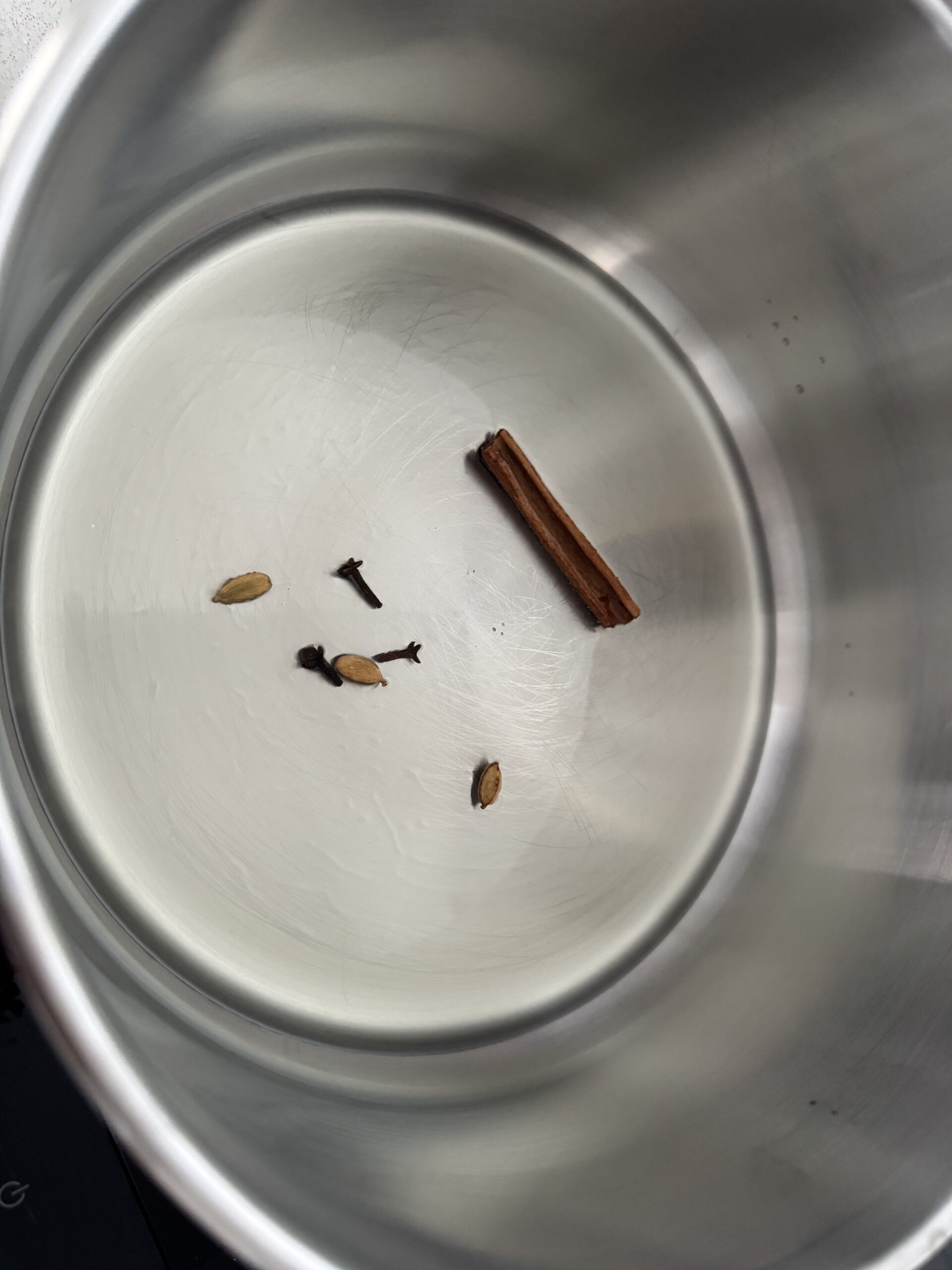 • Ajoutez les clous de girofle, la cardamome et la cannelle.