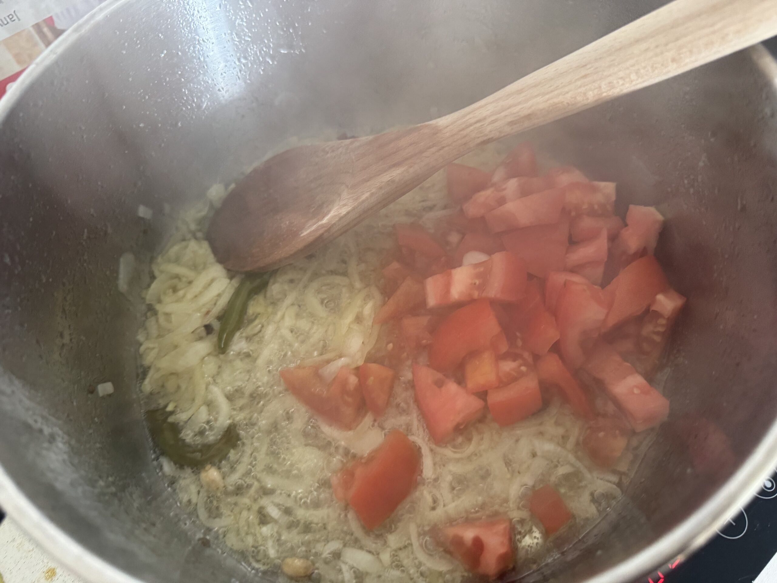 • Incorporez la tomate et laissez cuire jusqu’à ce qu’elle soit fondante.
