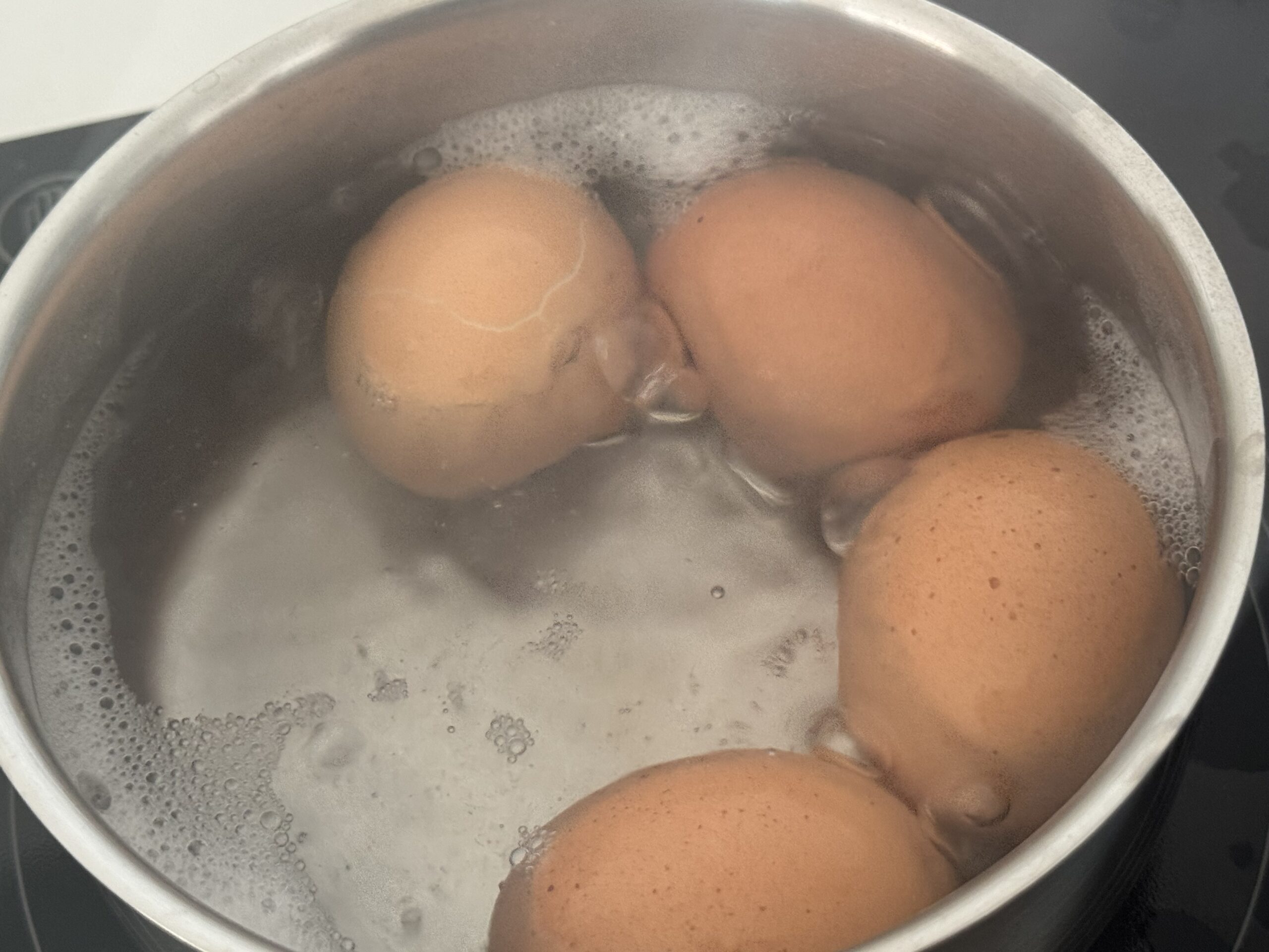 - Fais cuire les œufs 10 minutes dans l’eau bouillante.