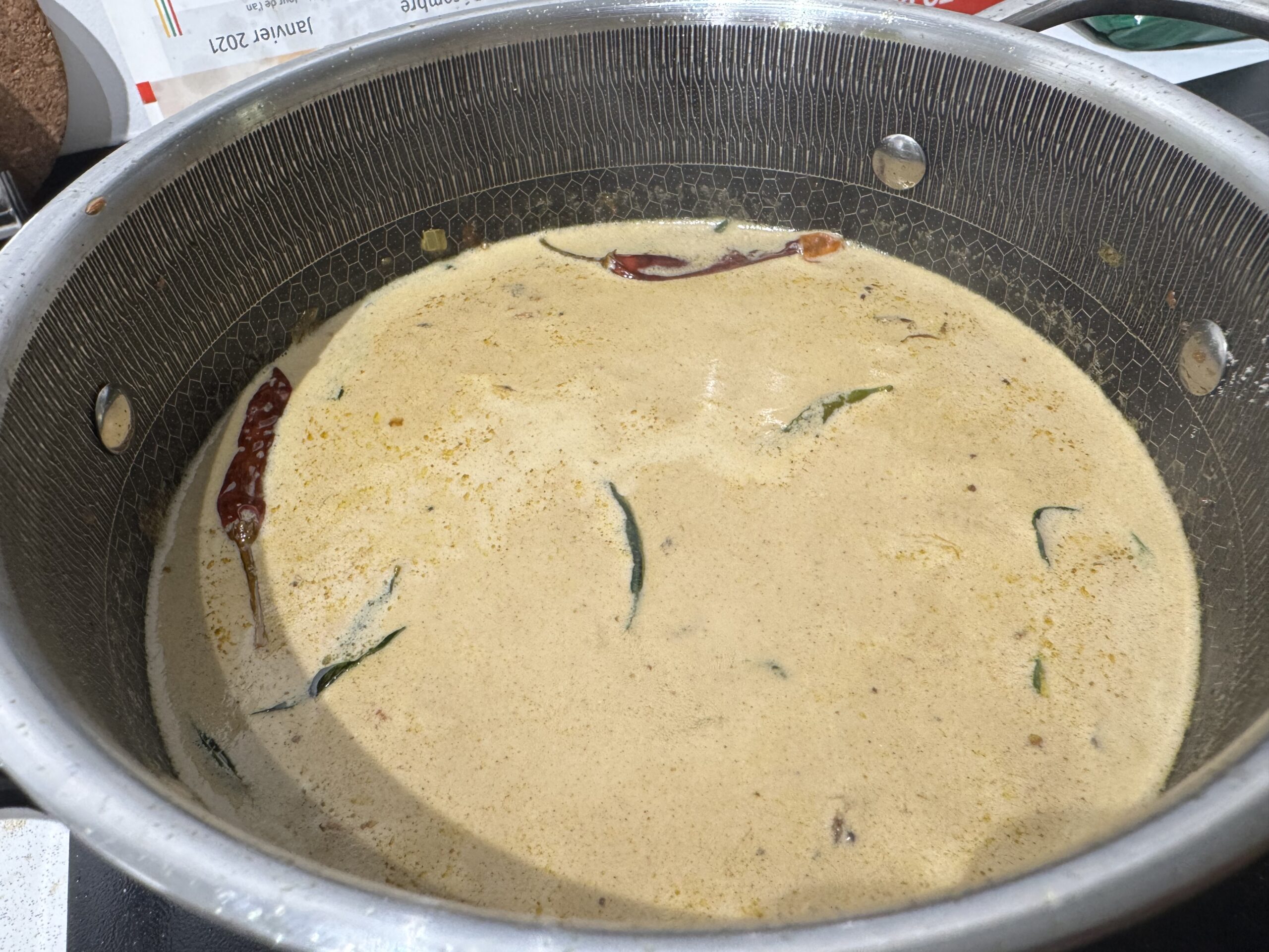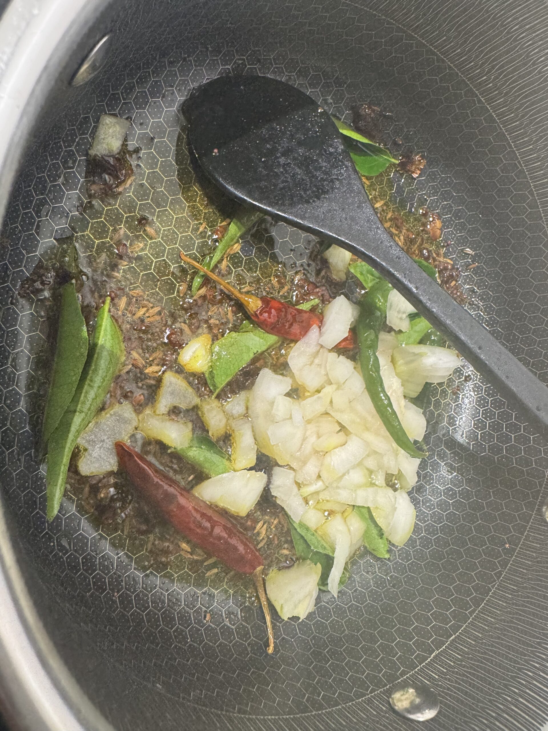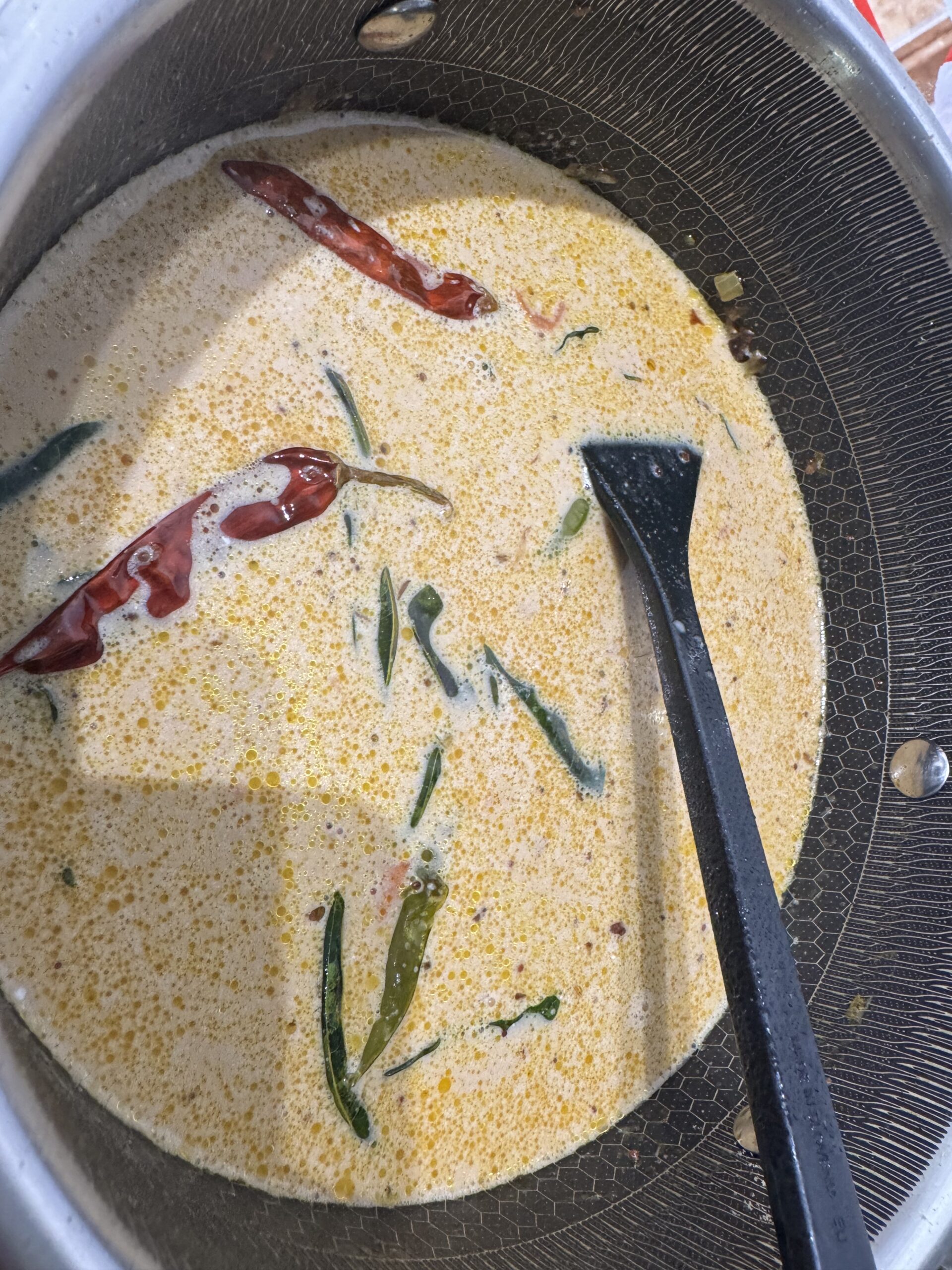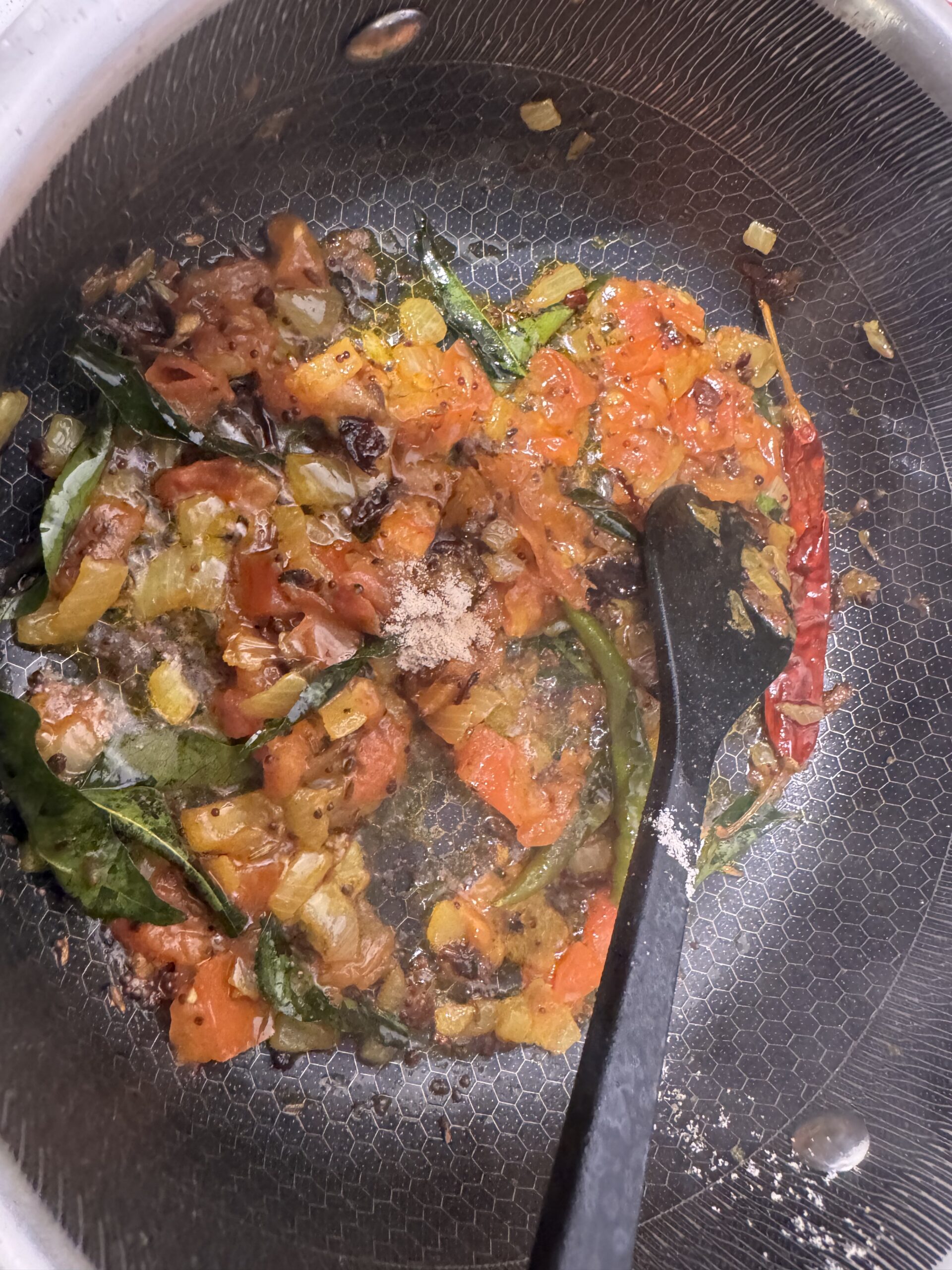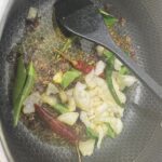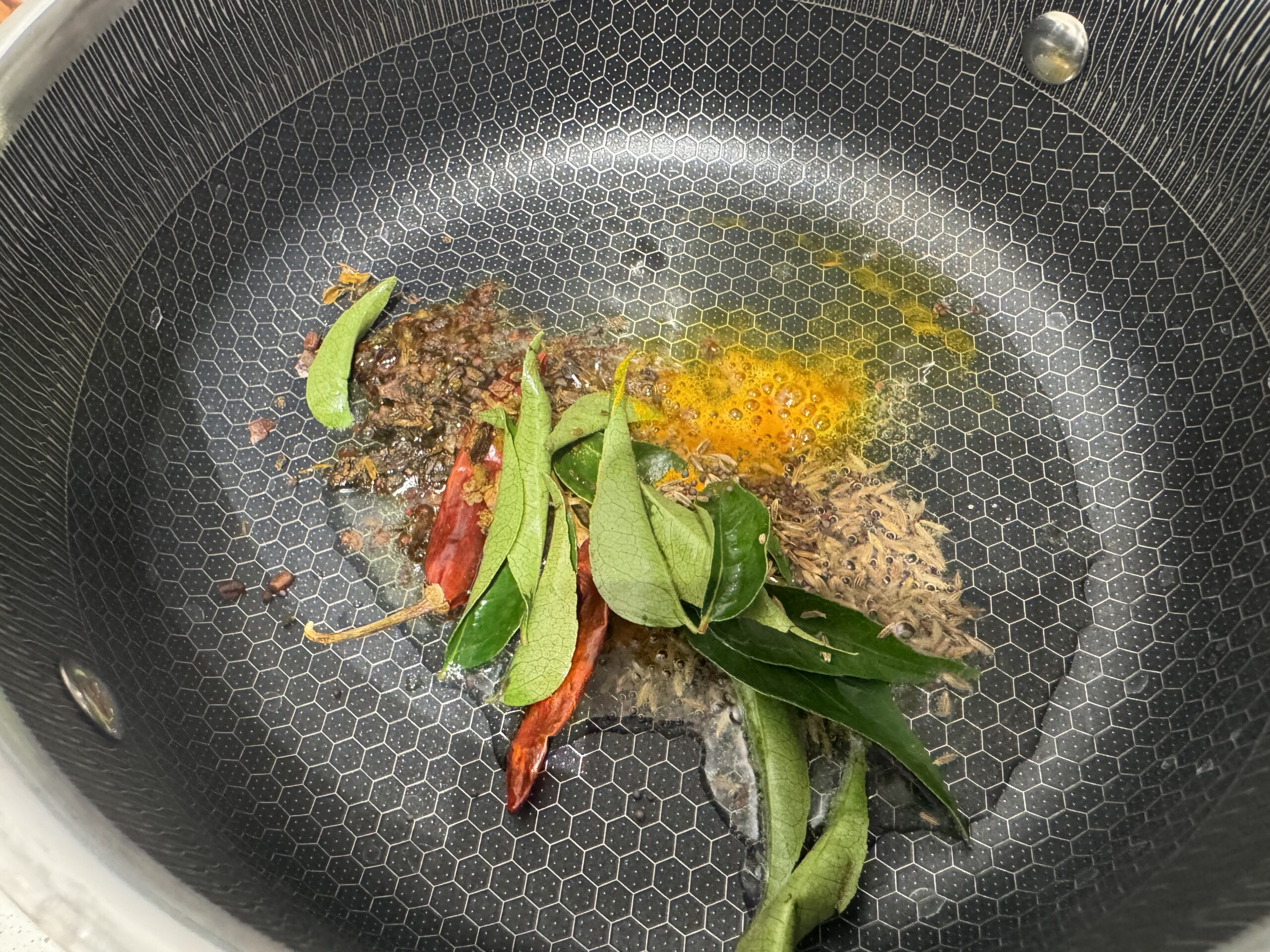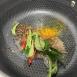 • Incorporez les feuilles de curry et le vadevam, faites revenir quelques secondes.